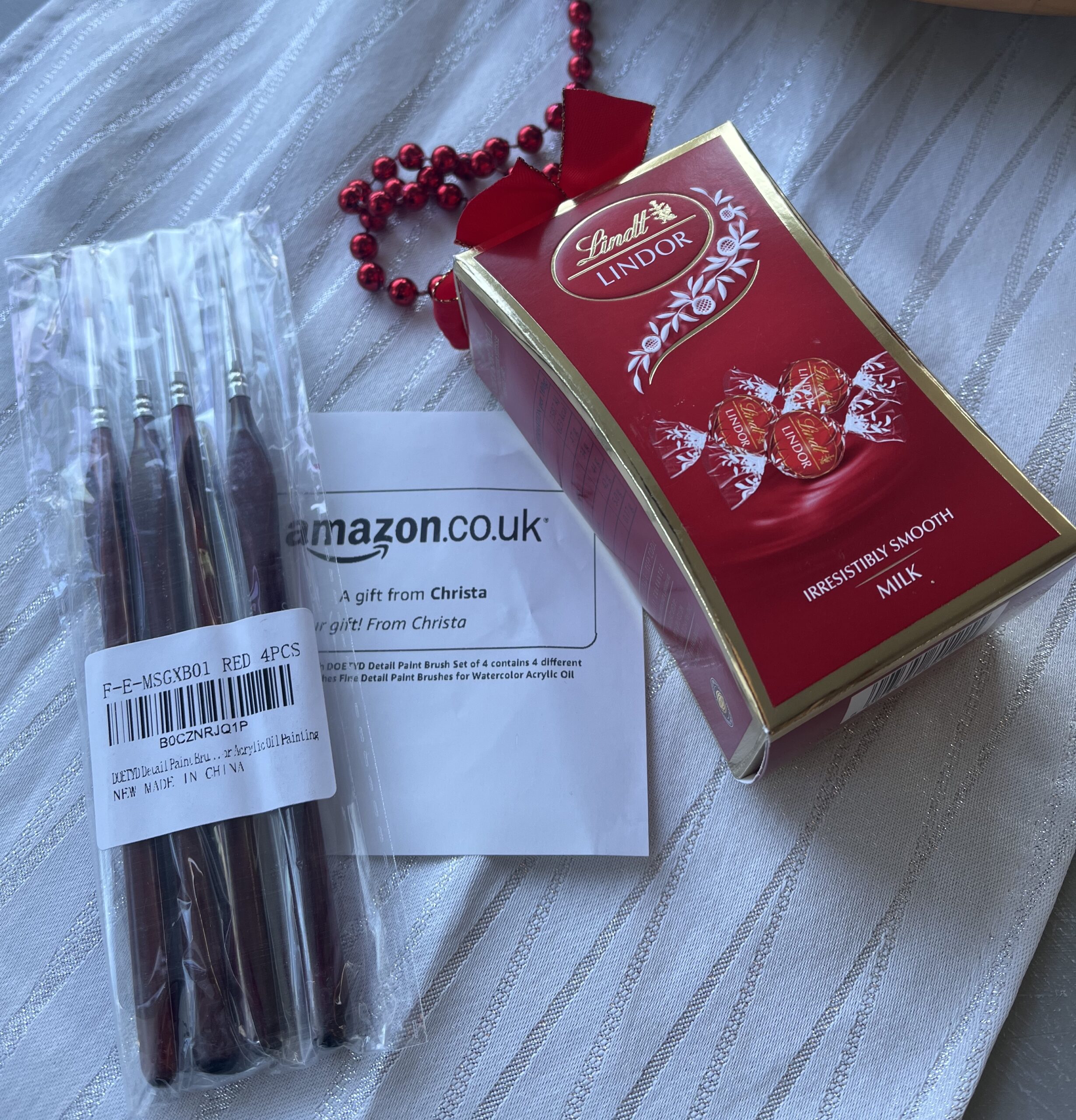 Thank you to Secret Santa for tha choccy delivery! Kettle on…Liz